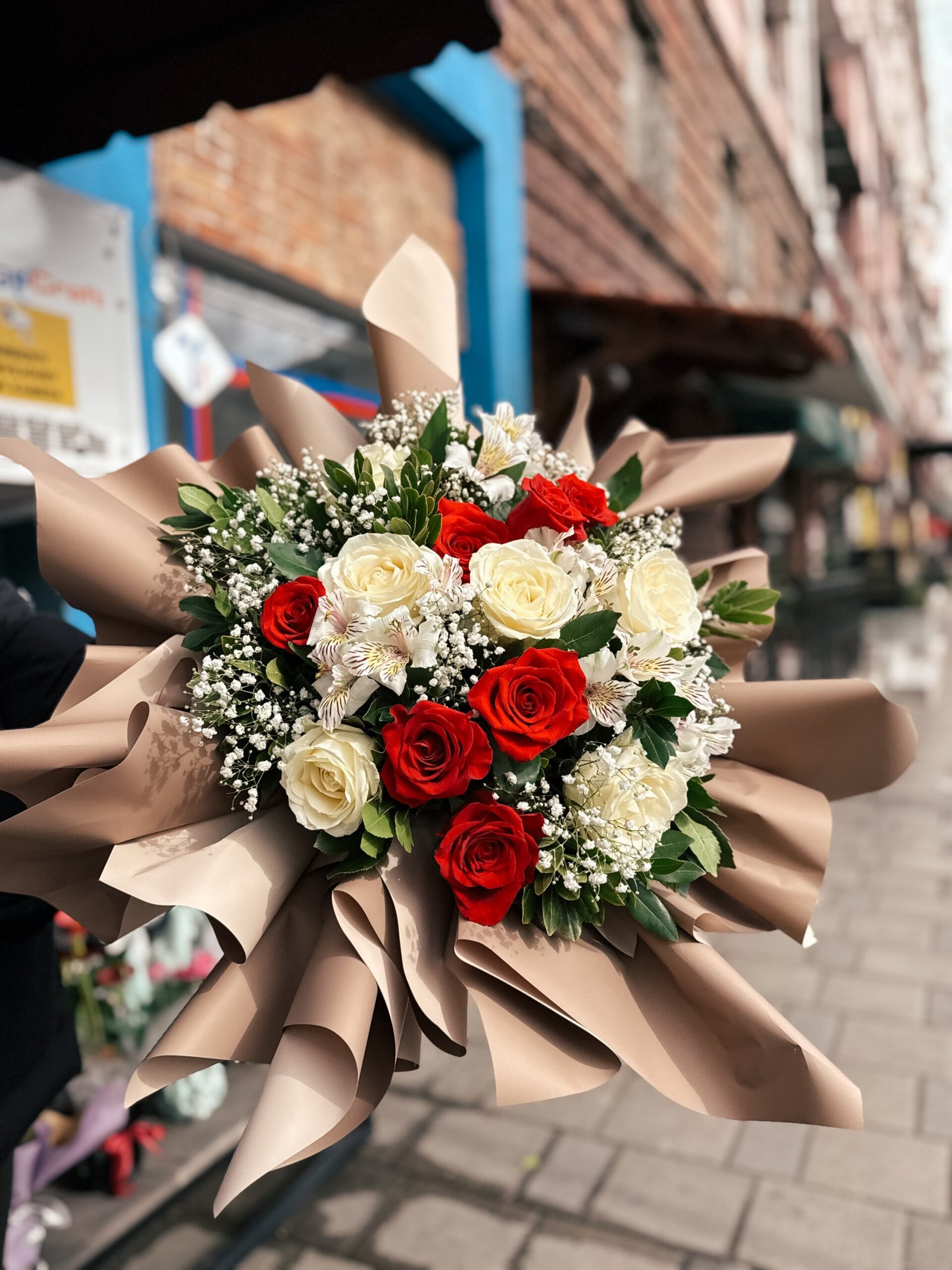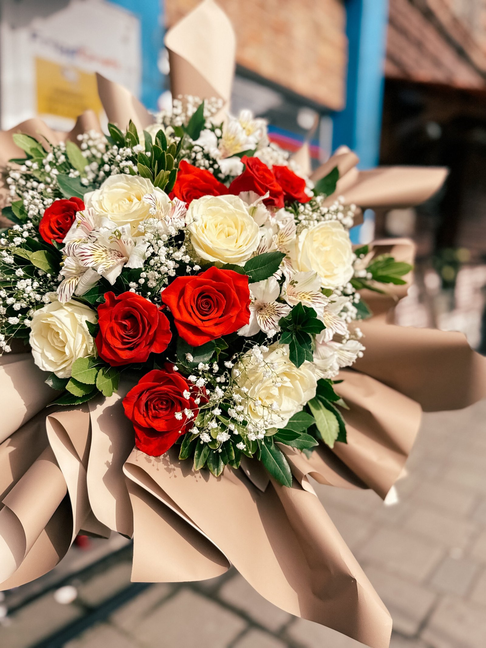Një simbol i dashurisë dhe bashkimit të përjetshëm. Eternal Union bashkon trëndafilat e kuq e të bardhë në një harmoni perfekte, duke reflektuar pasionin dhe pastërtinë e një dashurie të vërtetë. Një zgjedhje klasike dhe elegante për dasma, fejesa apo momente që përfaqësojnë fillime të reja plot dashuri.