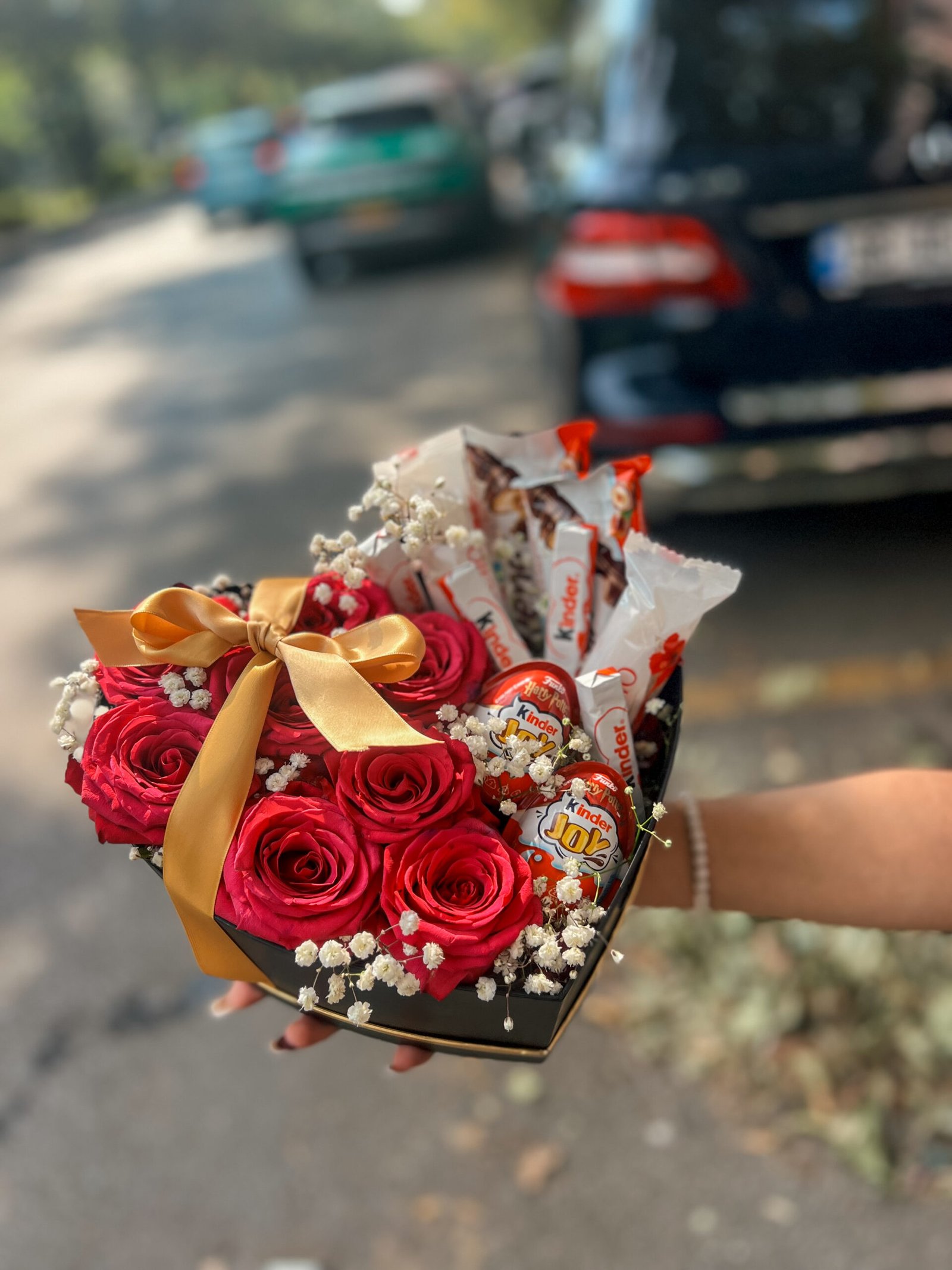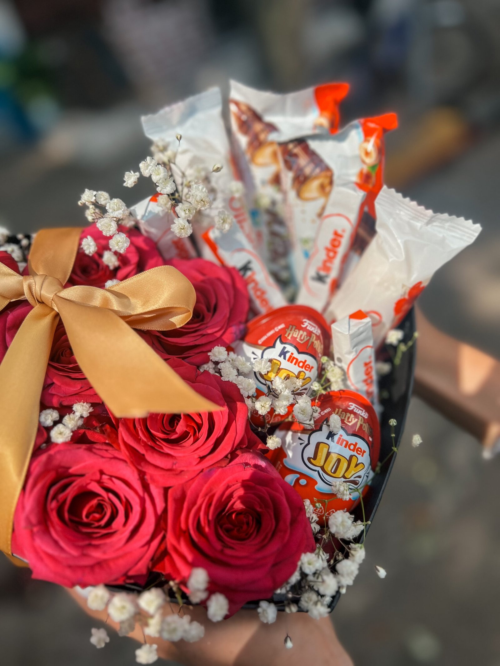Një kombinim perfekt mes ëmbëlsisë dhe romantizmit. Sweet Love bashkon trëndafilat e kuq – simbolin e dashurisë së thellë – me çokollatat Kinder, për të dhuruar jo vetëm lule, por edhe buzëqeshje. Një dhuratë plot ngrohtësi, ideale për ta surprizuar dikë që e do me gjithë zemër.