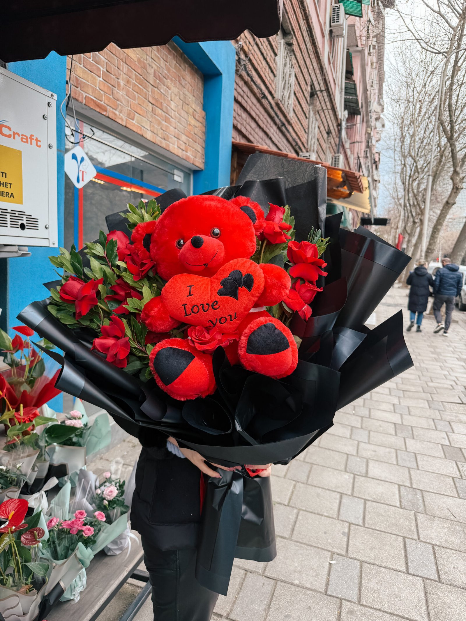 Një buqetë plot dashuri dhe ëmbëlsi. Teddy Love kombinon trëndafilat e kuq – simbolin klasik të pasionit – me një arush të kuq që përcjell përkëdhelje dhe ndjenjë. Dhurata perfekte për të shprehur dashurinë në mënyrën më të ëmbël dhe të sinqertë.